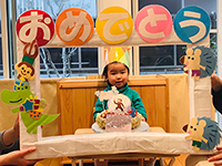 お誕生会は月毎に行わずできるだけその日に行い、そのお子様だけの素敵なお誕生ケーキでお祝いします。保護者の方をお招きしてみんなでお祝いしています。
